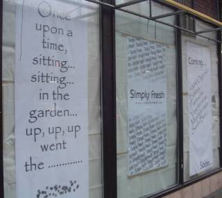 Comments: To announce the future opening of the Simply Fresh restaurant three large signs were designed, printed and put up. There are two 1x2.5 Metre signs and one 1.2x2.1 Metre sign. The signs can easily be seen and read from any direction. The signs use the same fonts and styles as the Website, Menu and Logo.