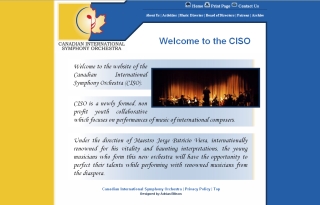 Comments: Incorporates the CISO's logo and colours in the website's layout. There is two level navigation and each page contains a link to a printer friendly page. Uses a content management system to list performances and other events.